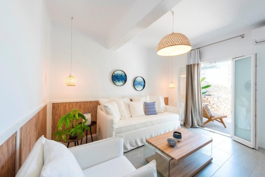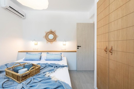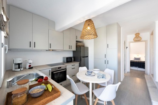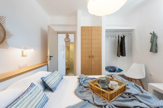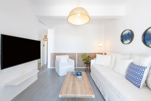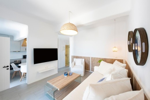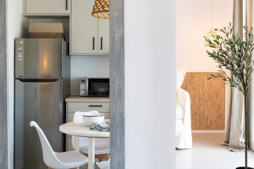 The project deals with a two-bedroom apartment renovation of a three-level apartment block situated quite close to Naoussa town on Paros Island. A new space allocation has been proposed and eventually assimilated with a view to redefining the relation between the living room and the kitchen.