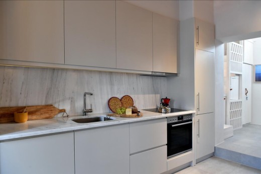 The reconstruction involves a new interior compartment organization by unifying the kitchen with the living room, enlarging the staircase allocated space, adding a new bathroom on the first floor, and refining the space on the large veranda on the first roof. A completely new infrastructure system has been provided, including plumbing, electrical and air-conditioning system.